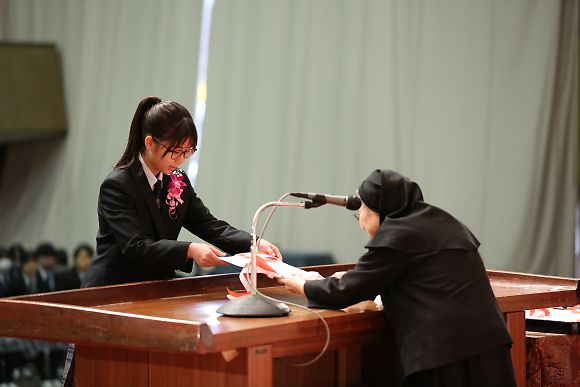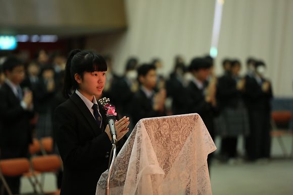 2026.3.7 暖かで春の兆しが感じられる頃、大阪信愛学院中学校第79回卒業式が学院講堂において喜びと感謝の中に荘厳に執り行われました。