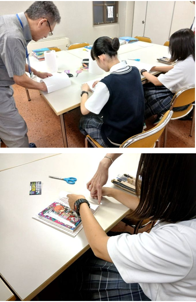 2日目は、本にブックカバーを装備する作業や、本を紹介するPOP作り、カウンター業務を体験しました。