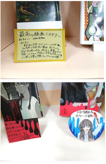 この職場体験で作成したPOPは、図書館3階の『メゾンドライブラリー』のコーナーに展示しています。