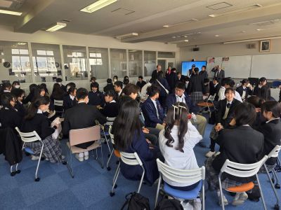 台湾から25名の中高生が来校。本校の中学3年生と交流授業をしました。台湾の生徒は日本語で台湾や光仁中学の紹介をし、信愛の生徒は英語で日本の紹介をしました。