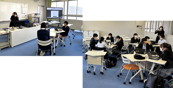 小学生たちはいつもは入れない中学校のコンピュータルームに入り、メタバースで交流会に臨みました。