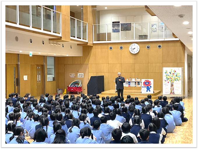 スクールライフ 2025.12.09 大阪万博からの贈り物 今年、世界の人たちが大阪に来てくれて大変盛況だった大阪・関西万博。その大阪・関西万博で実際に展示されていた各国パビリオンの貴重な品をいただきました。 ヨルダンのワディ・ラム砂漠の砂と死海の塩。パキスタンのピンク岩塩。ポルトガルの海や波を表したロープ。普段、あまり見ることのない万博からの贈り物に子どもたちから歓声が上がりました。 この記事をシェアする スクールライフTOPへ 小学校ブログTOPへ