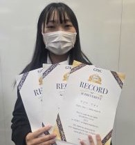 矢島さんはGTECのリスニング満点を獲得!表彰状もスコアの伸び、合計スコアの高得点、リスニング高得点の3枚の表彰状をもらいました。オーストラリア姉妹校にも留学したり、ホストファミリーとして、姉妹校の生徒も受け入れたりした経験があり、とにかく楽しみながら英語を使うことを心掛けたそうです。