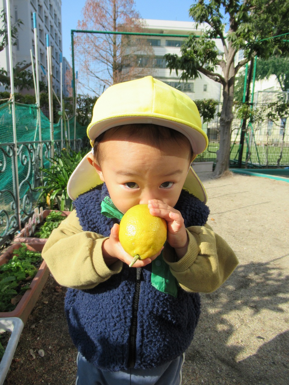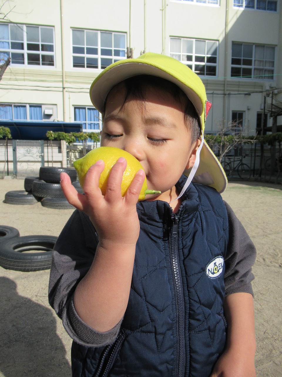 レモンを収穫!!美味しく頂きました。(2024年度修了児記念植樹)