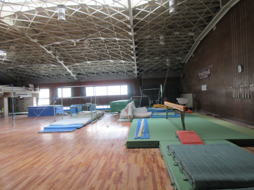 本校には体育館が3つ(第1体育館~第3体育館)あり、「第2体育館」では、体操部が全国大会を目指して日々練習しています。