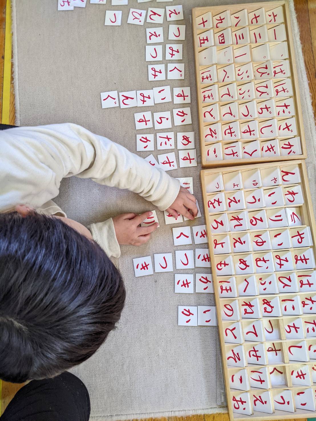 話す→聞く→読む→書く という発達の流れを大切に、子ども達が今吸収したい!というタイミングで自ら選び、取り組んでいます。