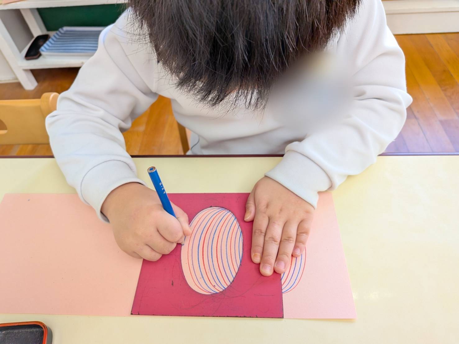 線をなぞる動きを通して、書くために必要な手の動きや力加減を育てていきます。