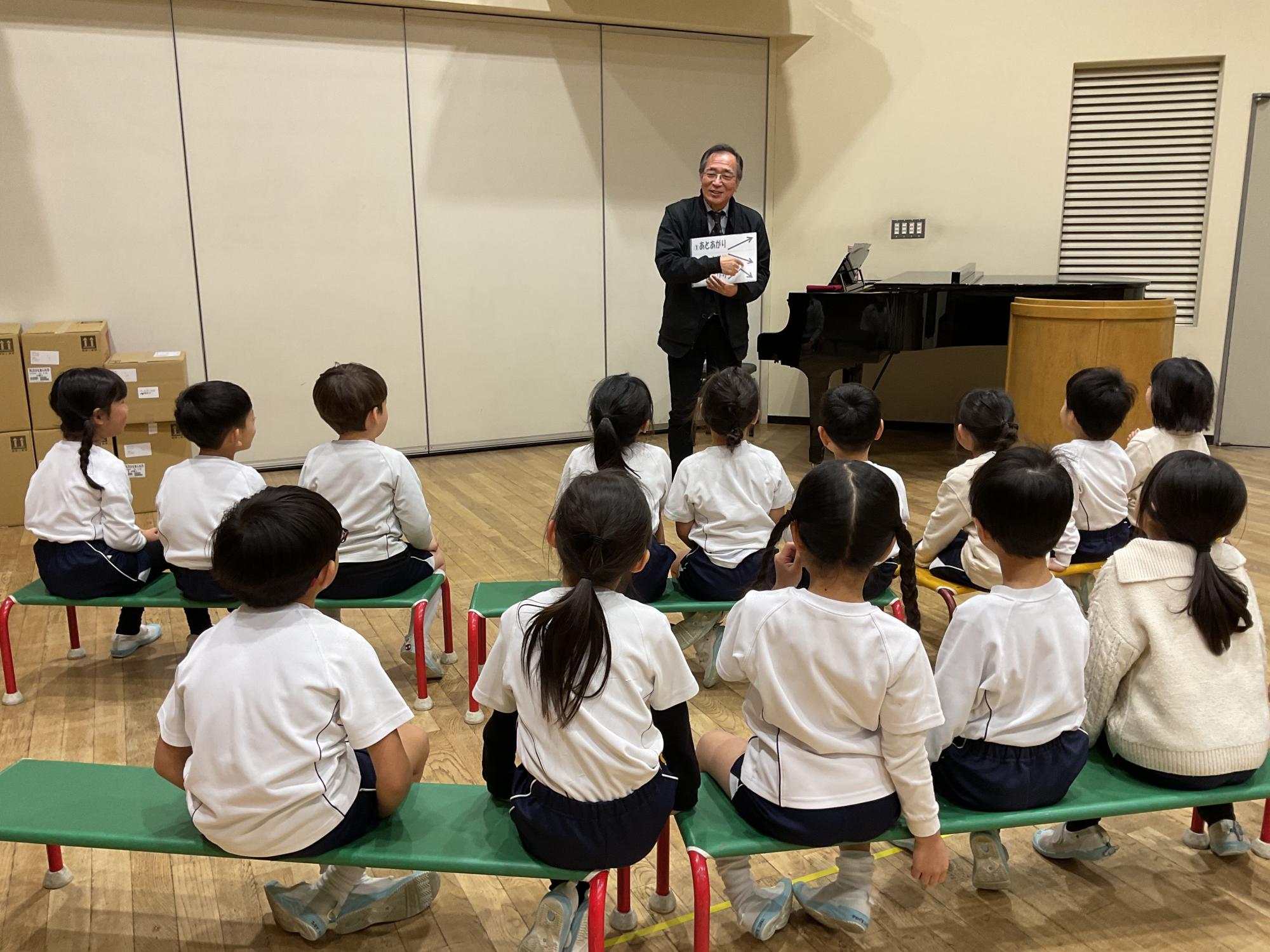 保育・行事の様子 2026.02.21 ♪園長先生と音を楽しむ♪ 園長先生と音楽を楽しむ時間も残り少なくなりました。卒園式の歌や、音の上がり下がりを勉強しました。各クラスの音楽の様子をお届けいたします。 みんな園長先生のお話を楽しそうに聞いています。小学校に行ってもみんなで歌う楽しさを忘れないでくださいね この記事をシェアする 保育・行事の様子TOPへ 幼稚園(本園3~5歳)ブログTOPへ