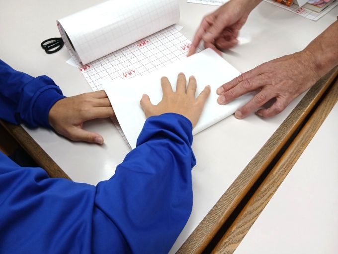 2日目の午前中は、本にブックカバーを装備する作業や、展示コーナーに並べる本を集めました。