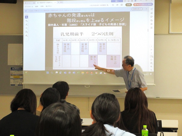 赤ちゃんの発達を乳児期前半と乳児期後半に分けて紹介し、赤ちゃんの成長や発達をクイズ形式で知っていただきました。