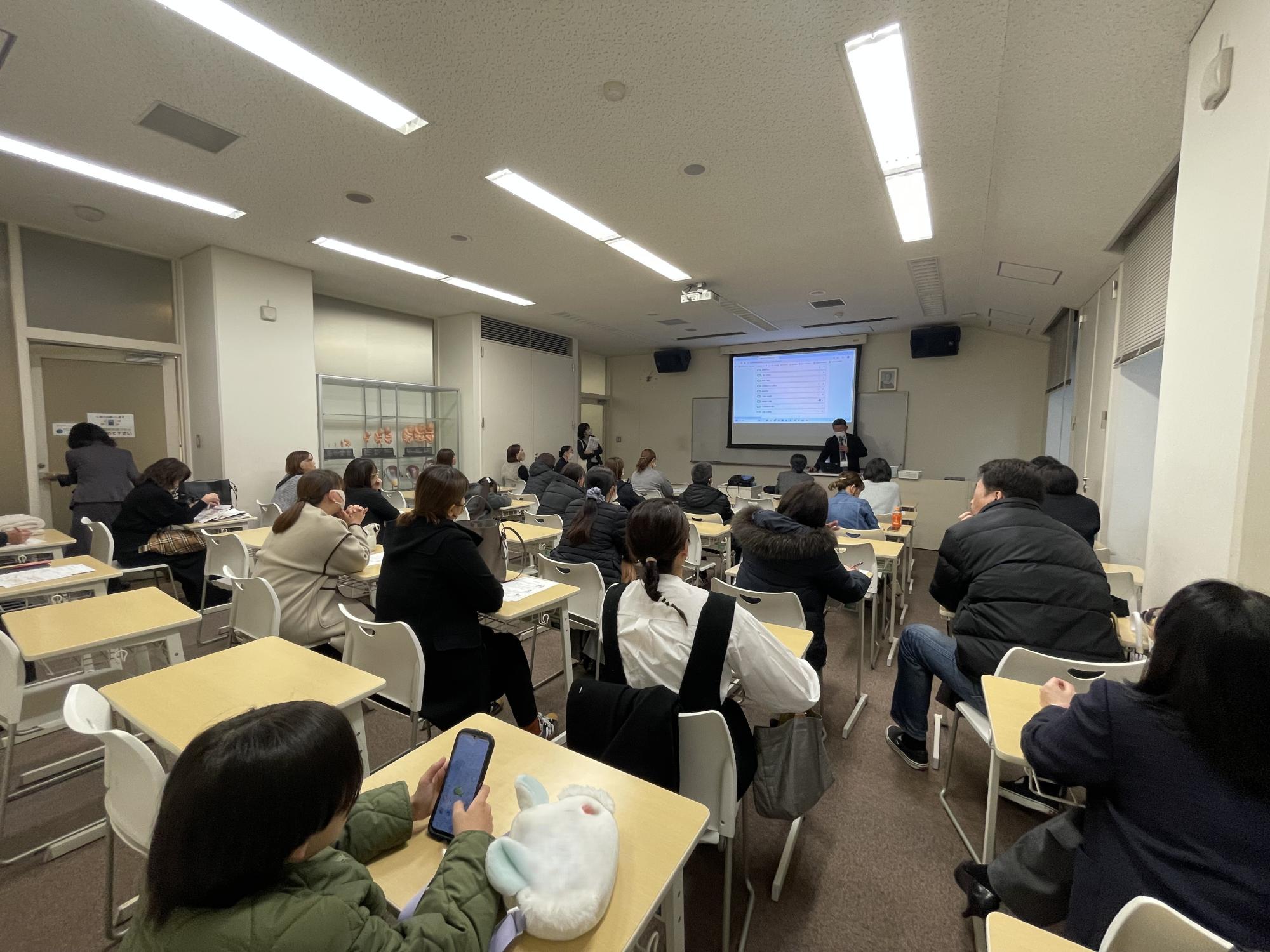 入学予定者がテストに取り組んでいる間、保護者向けのプログラムも実施しました。