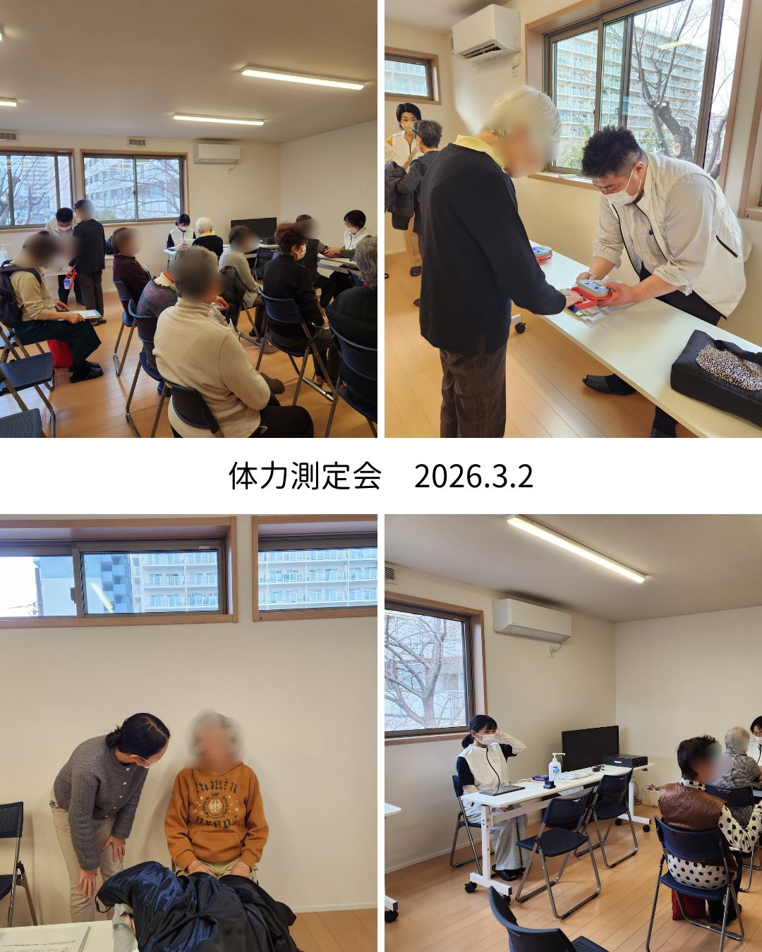 3月2日(月)、菫憩の家において、百歳体操の参加者を対象とした体力測定会を開催しました。前回の関目憩いの家に続き、2025年度は4回目の開催となります。